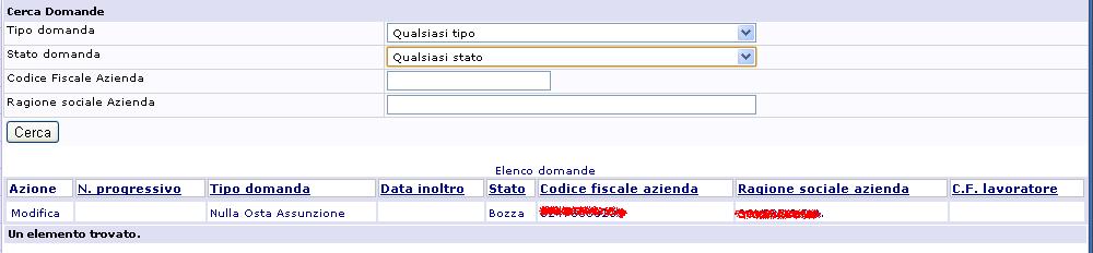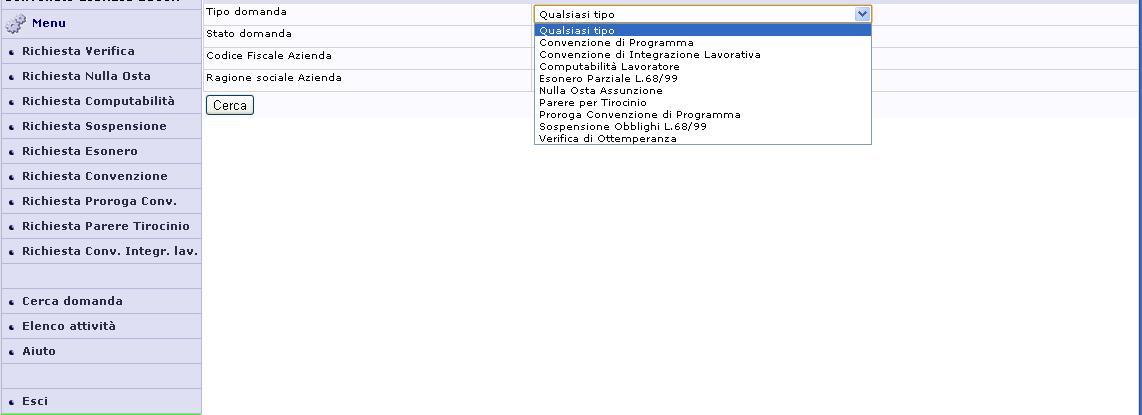 E' possibile ricercare tutte le domande di propria competenza (prodotte da se' stessi) per tipologia,