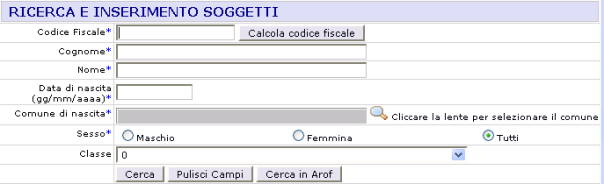 Si clicca su Aggiungi soggetti e si visualizza la seguente maschera: