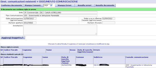 Si chiuderà poi la comunicazione cliccando sul tasto 'Conferma Documento'.