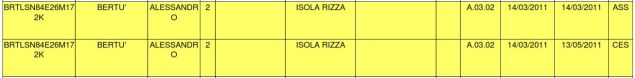 Fig. 3. Esempio di dati relativi a soggetti non presenti in Arof.