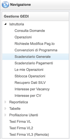 Sotto il menù istruttoria è disponibile la voce "Scadenzario generale"