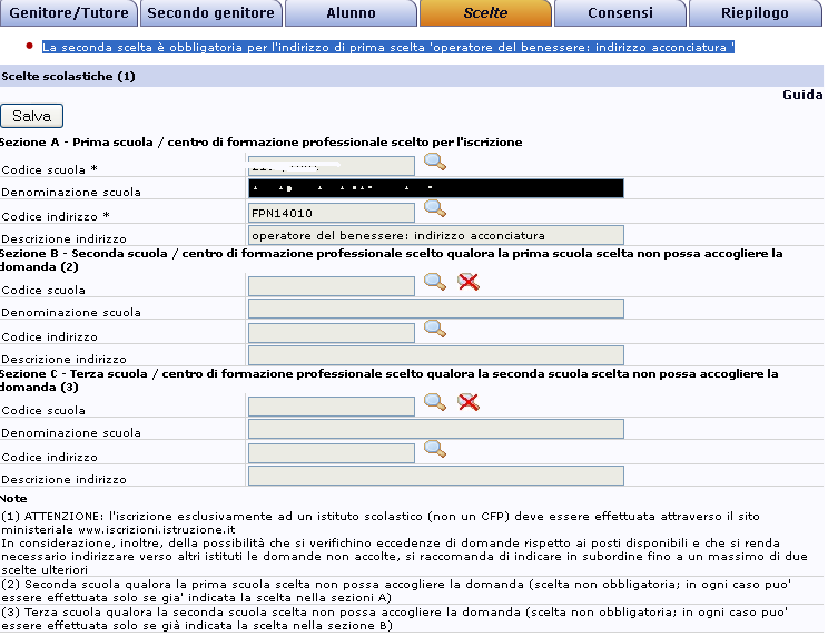 Dato il numero particolarmente elevato di iscrizioni solitamente registrate per le qualifiche per estetista e acconciatore, quando la prima scelta sia 'operatore del benessere: indirizzo estetica' o 'operatore del benessere: indirizzo acconciatura' si raccomanda di effettuare almeno una seconda scelta verso una qualifica in un diverso comparto, o verso la classe prima di un Liceo/Istituto Scolastico superiore.