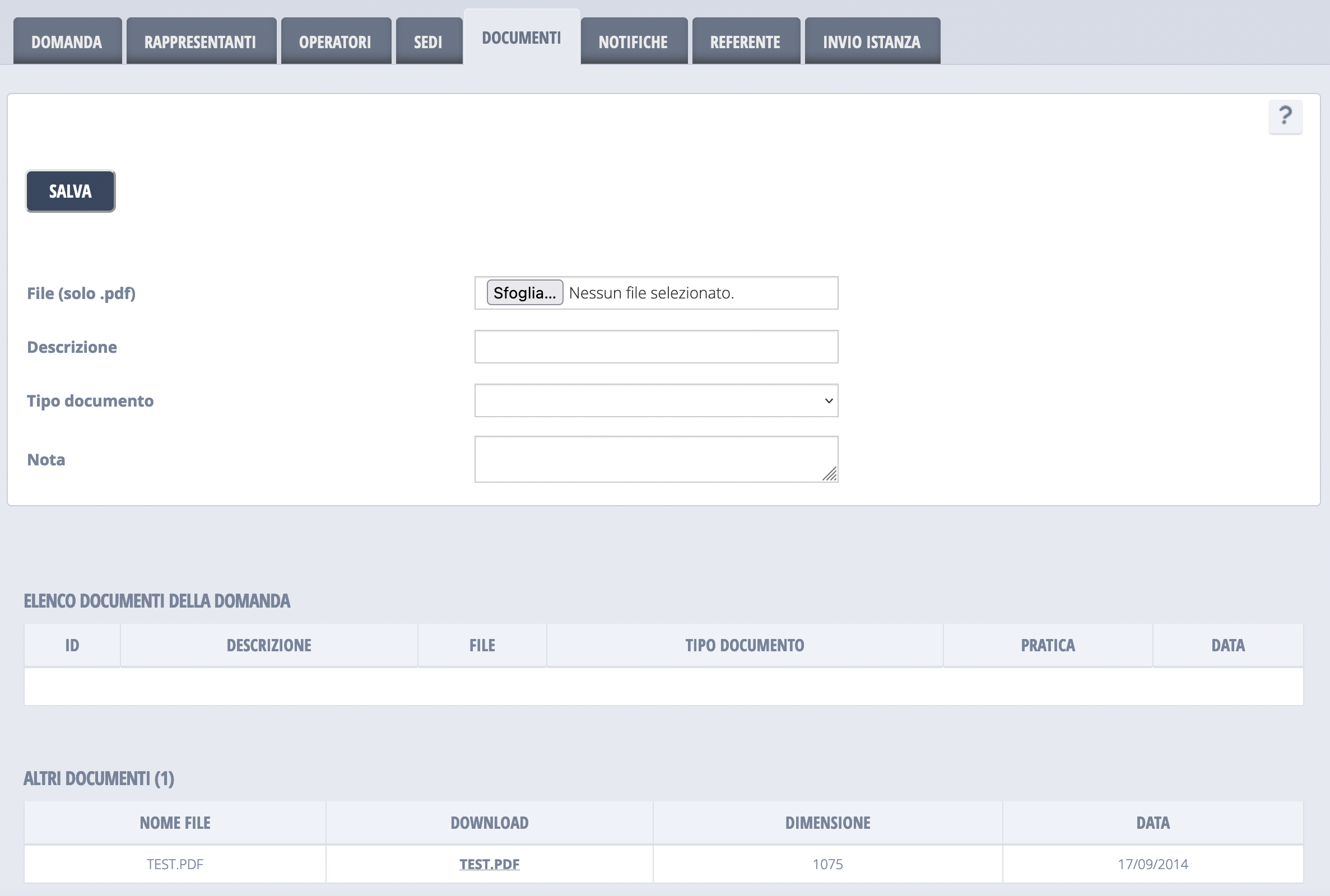 File allegato | No | Una volta caricato il file, sarà visualizzato un link tramite il quale sarà possibile scaricarlo |