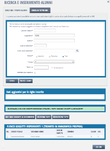 impostare criteri di filtro per limitare il risultato e facilitare l'individuazione degli alunni. L'alunno da inserire potrebbe non appartenere all'istituto ma … si sta per creare. L'insieme dei campi mostrati in questa sezione dipende dalla causale e potrebbe anche essere vuoto (come in figura). Si faccia attenzione che