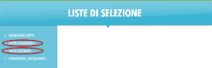Liste di selezione Per agevolare le ricerche e la gestione di offerte di lavoro e candidature è possibile utilizzare le liste di selezione. Il menu delle lite di selezione consente di accedere a: aggiunta di una lista liste di candidati liste di offerte Condivisione di proprie liste e acquisizione di liste altrui
