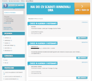 Ricerca Offerte di Lavoro La ricerca delle proprie offerte di lavoro avviene attraverso il seguente form di ricerca Una casellino di testo consente di … a sinistra, con le informazioni essenziali della offerta di lavoro, e di un bottone arancione a destra "avvia matching automatico".