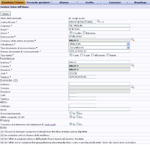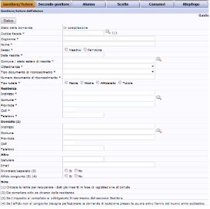 sono campi obbligatori. Sono presenti le sezioni per : Dati Anagrafici del Genitore/Tutore La sezione può essere completata inserendo tutti i dati o