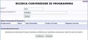 possibilità di effettuare una ricercain mancanza, si potrà procedere ugualmente digitando interamente la convenzione,le sezioni richieste, sono Azienda, Dati e